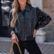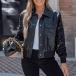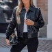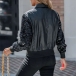 Fashion Bling-bling Long Sleeve Artificial Leather PU Crop Jacket