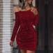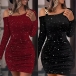 Fashion Bling-bling Long Sleeve Bucket Bodycon Dress
