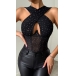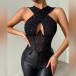 Fashion Bling-bling Rhinestone Cross Halter Neck Front Cut Out Backless Corset Bodysuit
