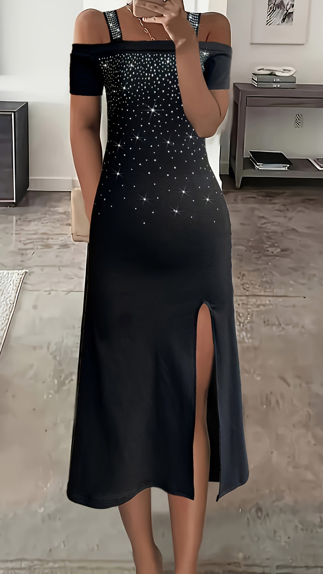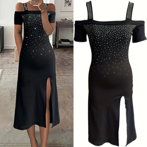 Fashion Bling-bling Rhinestone Off-the-shoulder Slit Party Dress
