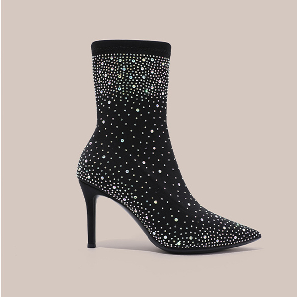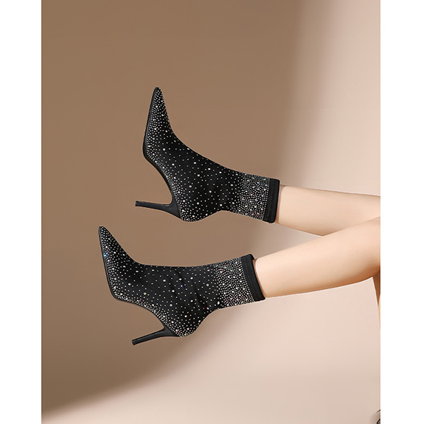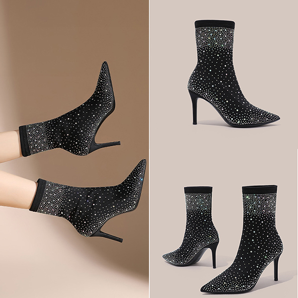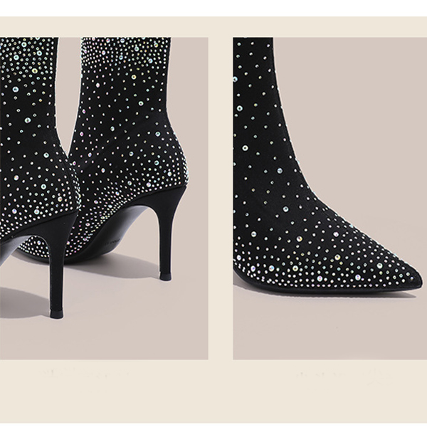 Fashion Bling-bling Rhinestone Pointed-toe High-heeled Ankle Boots