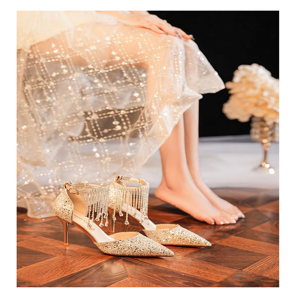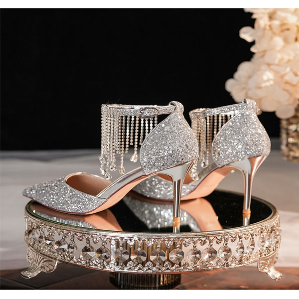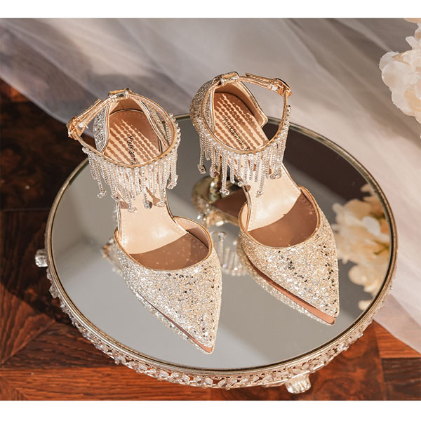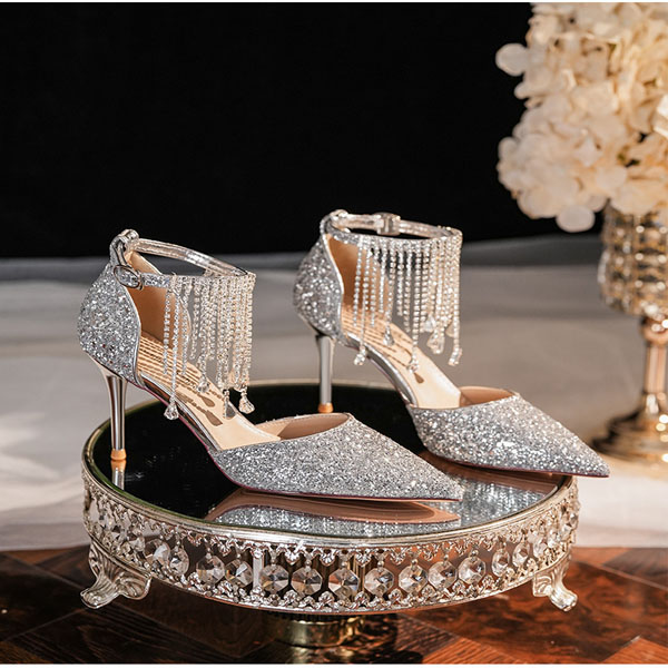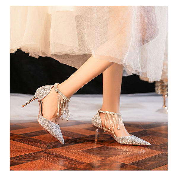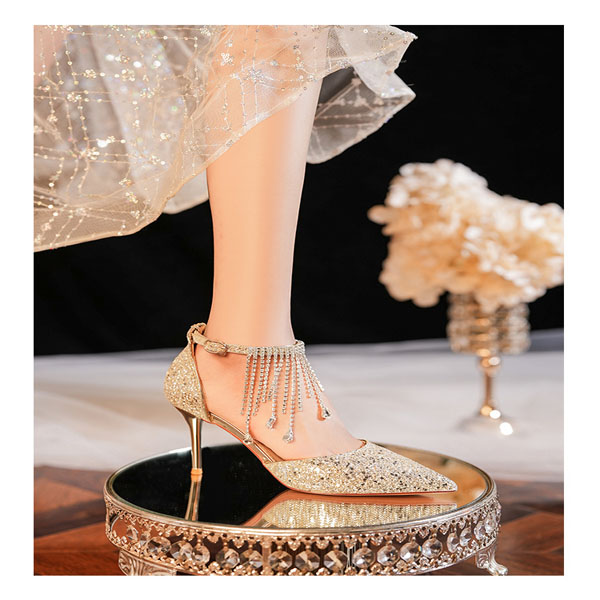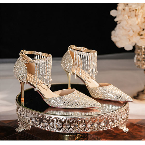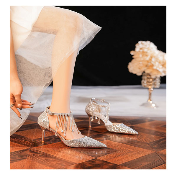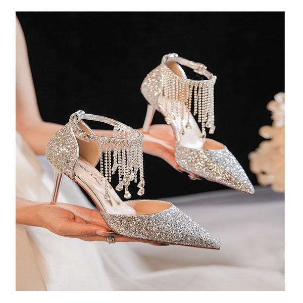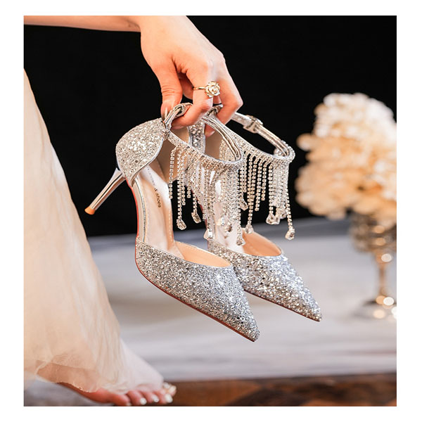 Fashion Bling-bling Rhinestone Tassle Pointed-toe High-heeled Shoes
