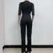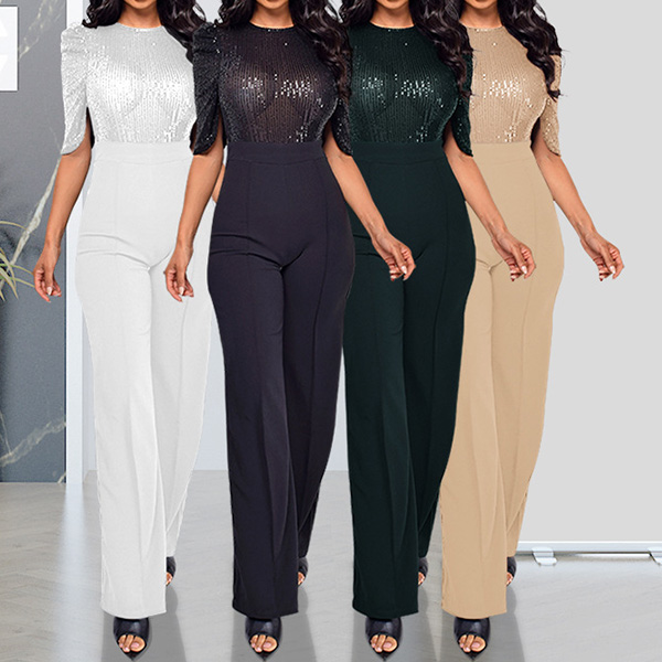 This statement-making jumpsuit features a eye-catching bling-bling embellishment that adds a touch of glamour and sophistication to the overall design. The round neckline and short sleeves create a classic, streamlined silhouette. The straight-cut, one-piece style offers a streamlined, elongating look that is both comfortable and flattering. Multi-colors avabile.