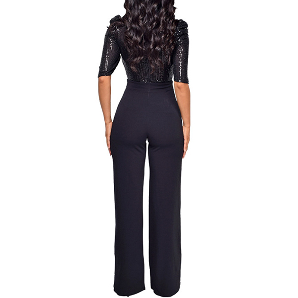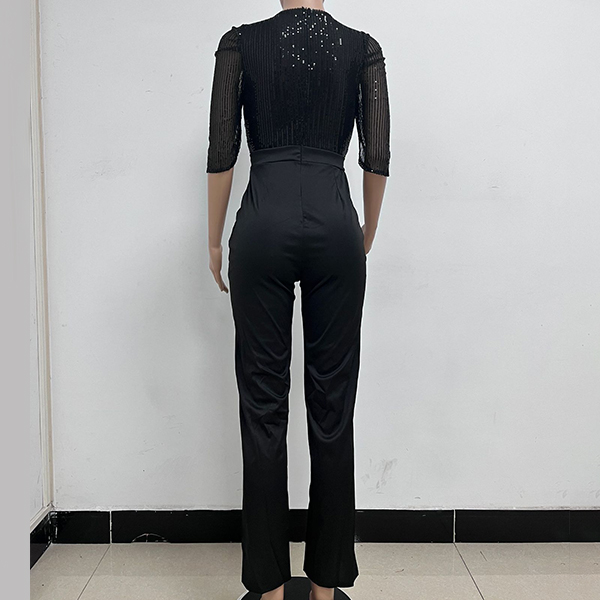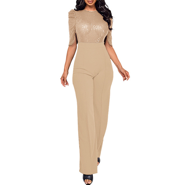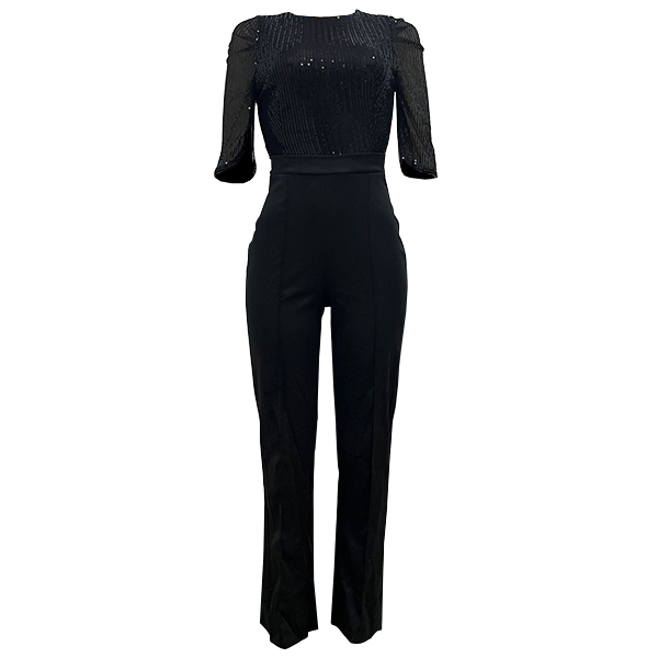 Fashion Bling-bling Round Neck Short Sleeve Straight-cut Jumpsuit