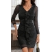 Fashion Bling-bling Ruffle V-neck Long Sleeve Bodycon Dress
