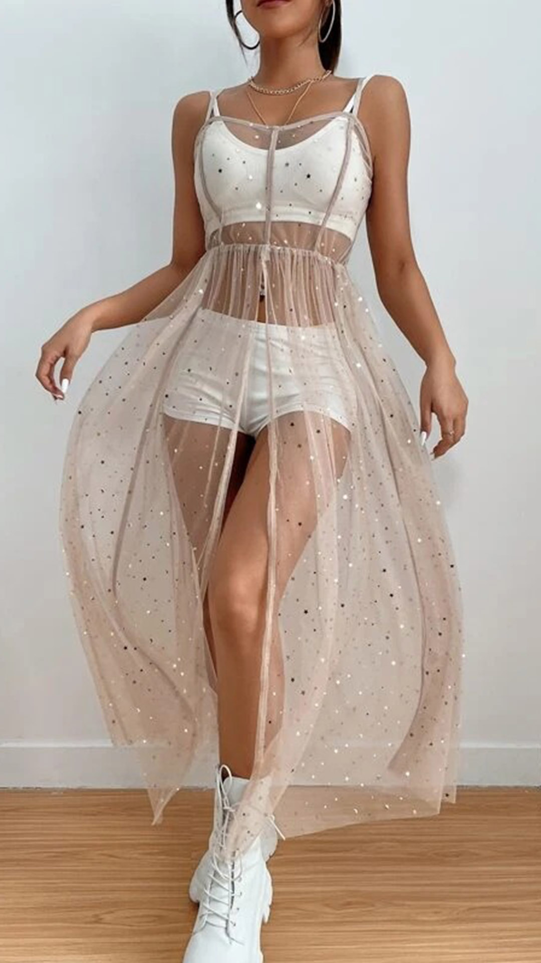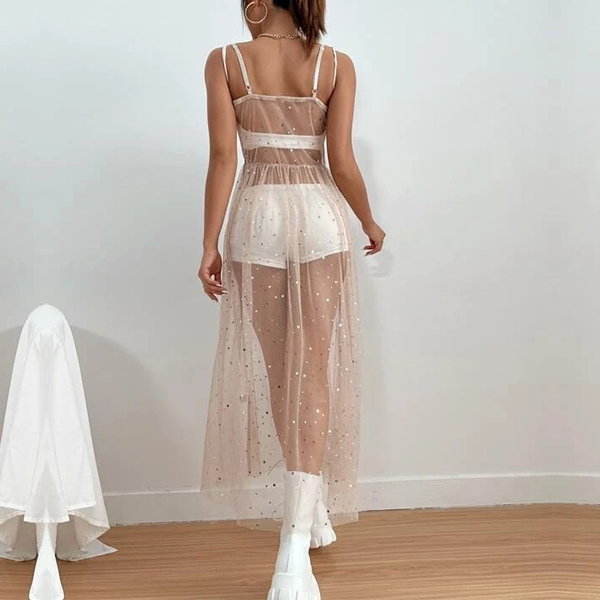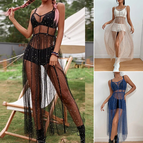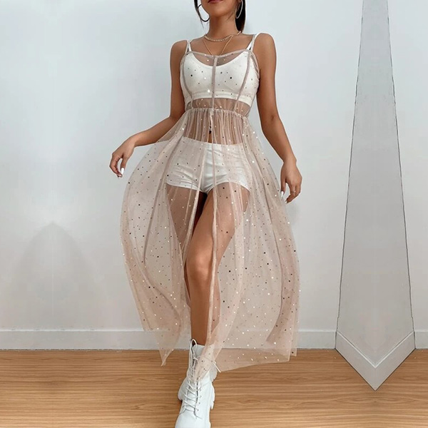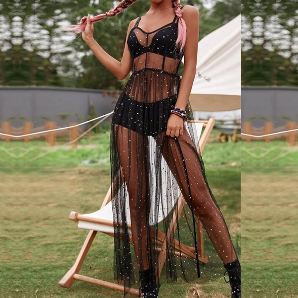 Fashion Bling-bling Semi-through Swimming Cover-up Dress
