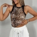 Fashion Bling-bling Sequin Crew Neck Sleeveless Tank Shirt