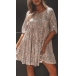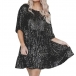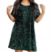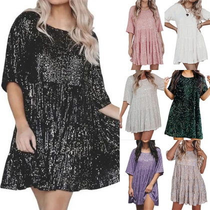 Fashion Bling-bling Sequin Round Neck Elbow Sleeve Mini Dress