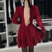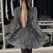 Fashion Bling-bling Sequin Sweetheart Neckline Long Sleeve Mini Party Dress
