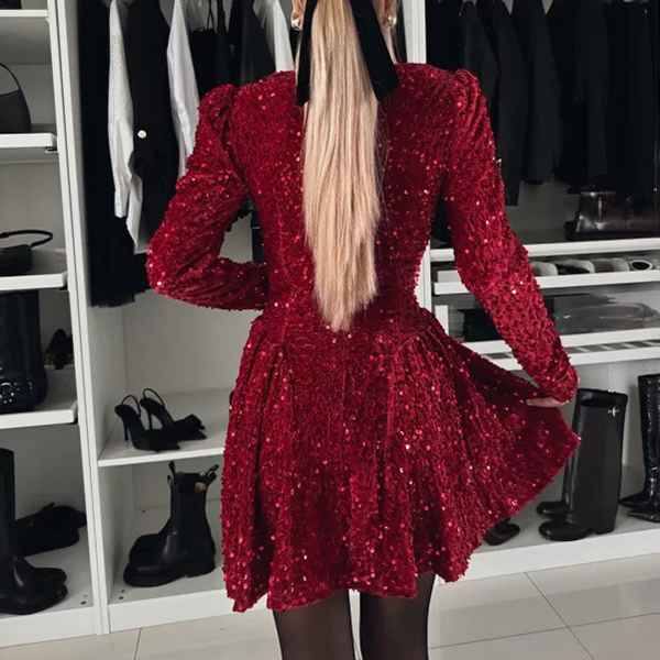 Stand out at your next party with this Bling-bling Mini Party Dress. This stunning dress features a dazzling sequin design that will make you sparkle and shine all night long. The sweetheart neckline adds a flirty and feminine touch, while the long sleeves provide an elegant and sophisticated look. Perfect for a special occasion or a night out on the town, this mini party dress is sure to turn heads and make you feel like the star of the show.