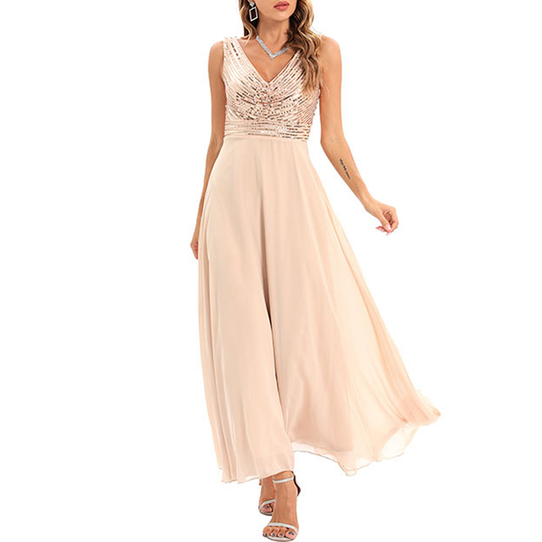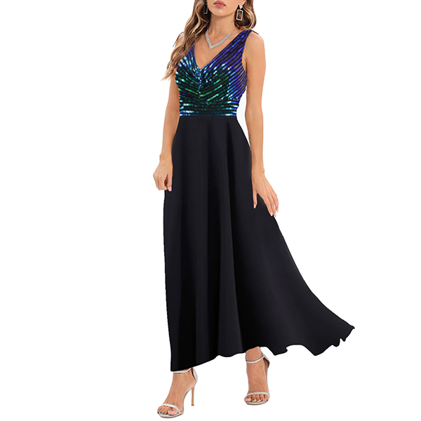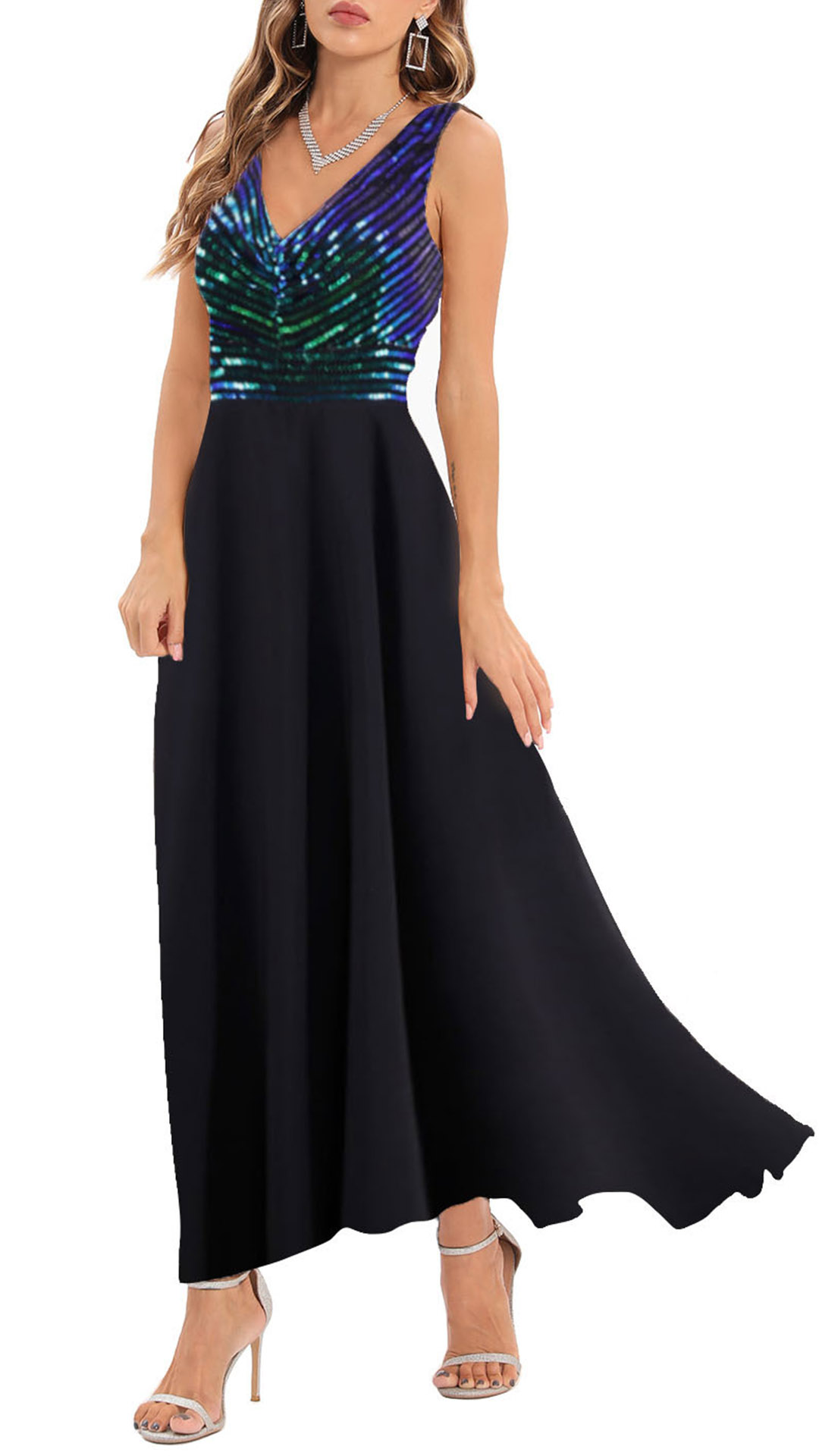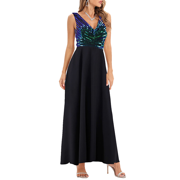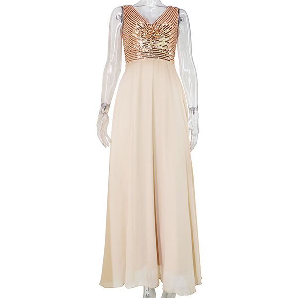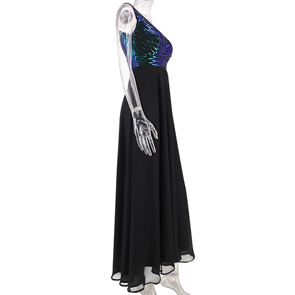 Fashion Bling-bling Sequin V-neck Sleeveless Maxi Dress