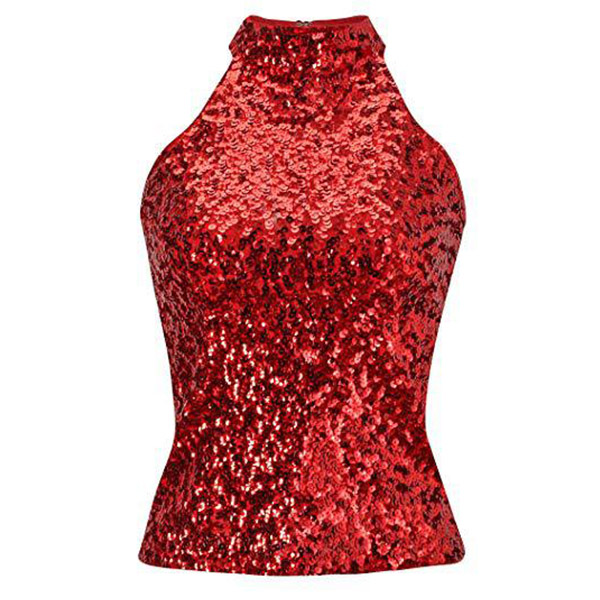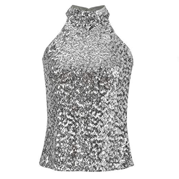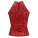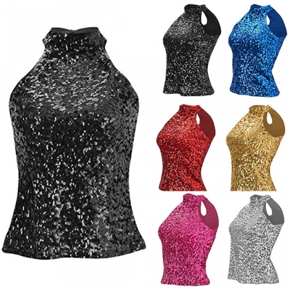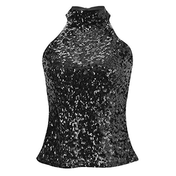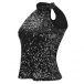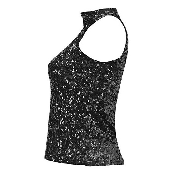 Fashion Bling-bling Sequined Mock Neck Sleeveless Shirt