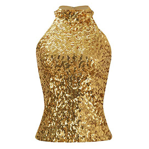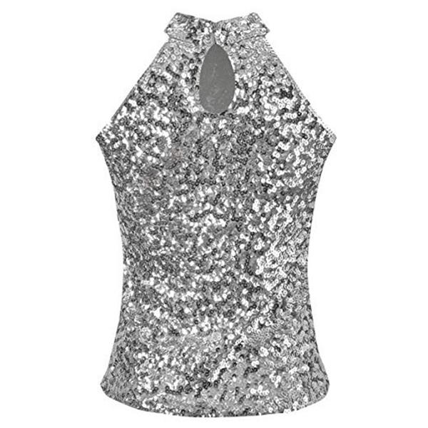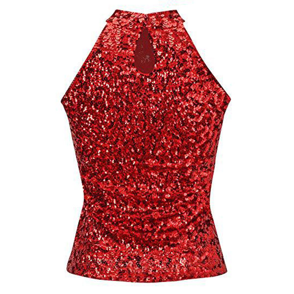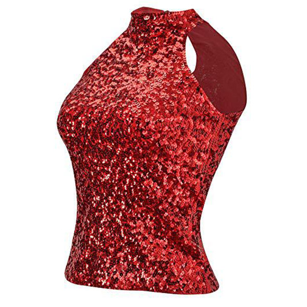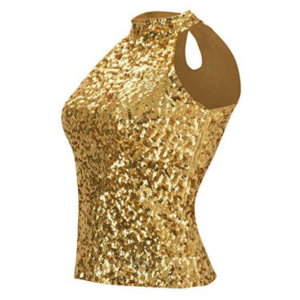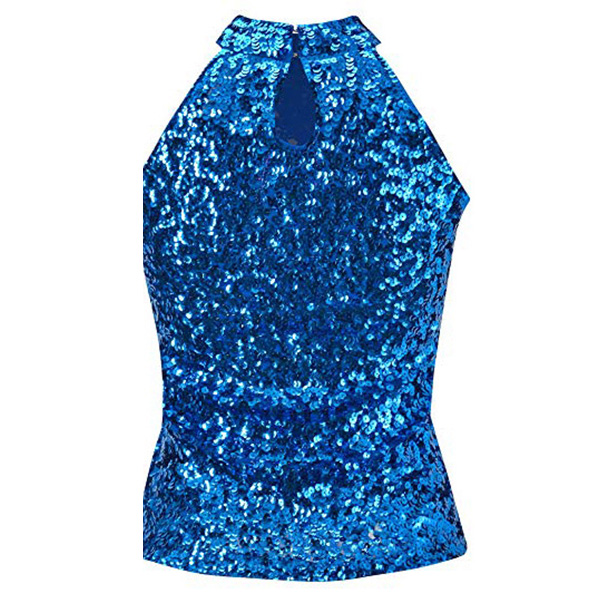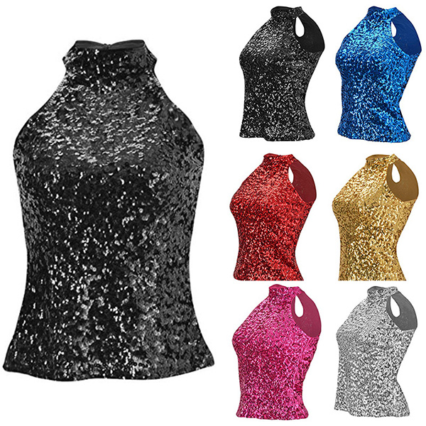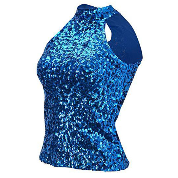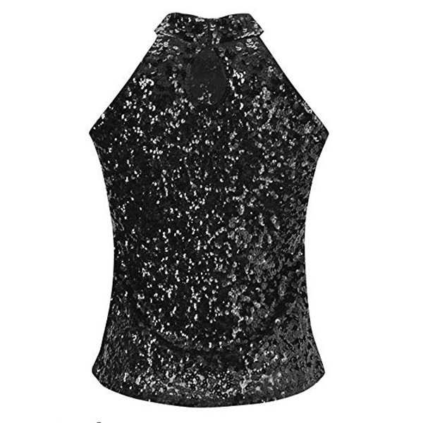 This bling-bling sleeveless shirt is a glamorous and eye-catching garment that is perfect for a night out on the town. The mock neck adds a touch of sophistication to the shirt, while the sleeveless design creates a lightweight and comfortable feel. It can be styled with high-waisted jeans or a skirt for a dressier look or dressed down with denim shorts for a more casual daytime outfit.