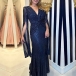 Fashion Bling-bling Sequined Ruched V-neck Slit Long Sleeve Party Dress