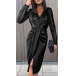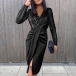 Fashion Bling-bling Sequined Spliced V-neck Long Sleeve Front Slit Party Dress