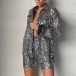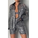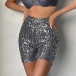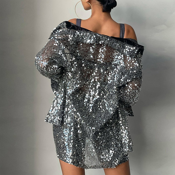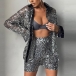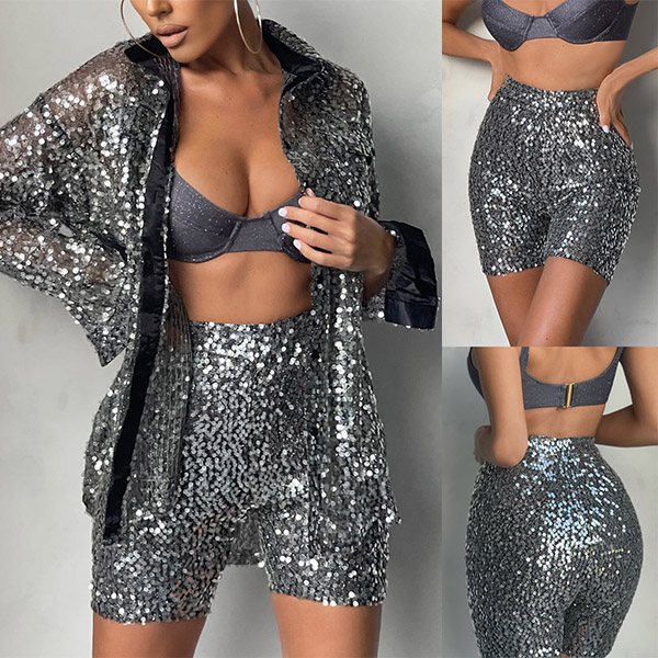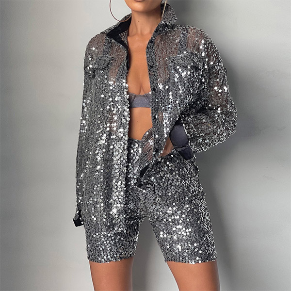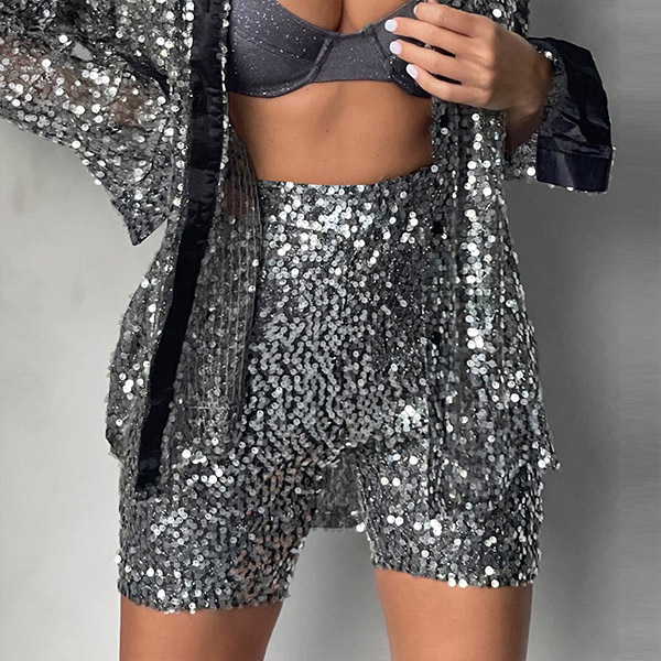 Fashion Bling-bling Sequined Two-piece Set Consist of Long Sleeve Cardigan and High-rise Shorts