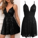 Fashion Bling-bling Sequined V-neck Backless Lace-up Slip Party Dress