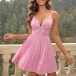 This dress is adorned with dazzling sequins, creating a bling-bling effect that catches the light and ensures you'll stand out in any gathering. The V-neckline and lace-up backless details adds a touch of femininity and elegance to the overall design. Perfect for parties and events!