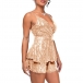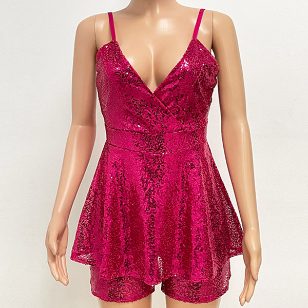 This eye-catching and glamorous romper features a dazzling sequined design, a flattering V-neckline, and an alluring backless silhouette, creating a show-stopping and fashion-forward look. Perfect for next party wear!