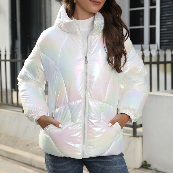 Fashion Bling-bling Stand Collar Long Sleeve Quilted Coat