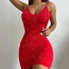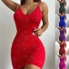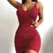 Fashion Bling-bling V-neck Criss-cross Backless Bodycon Party Dress