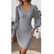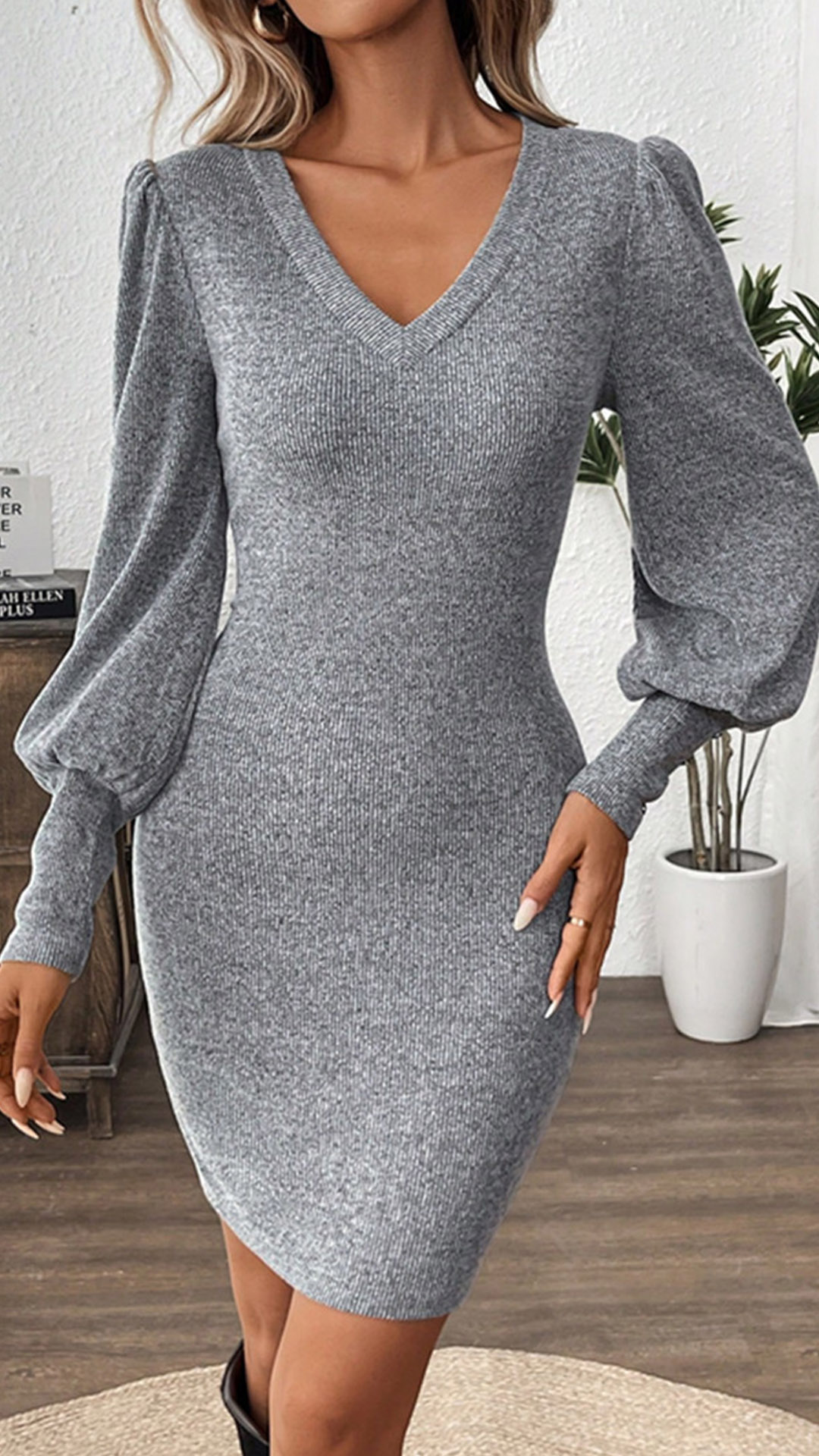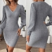 Fashion Bling-bling V-neck Long Sleeve Bodycon Dress