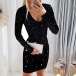 This bodycon dress features a V-neckline adorned with dazzling bling-bling embellishments that add a touch of sparkle and shine, creating a show-stopping look that will turn heads wherever you go. Perfect for party wear~