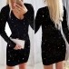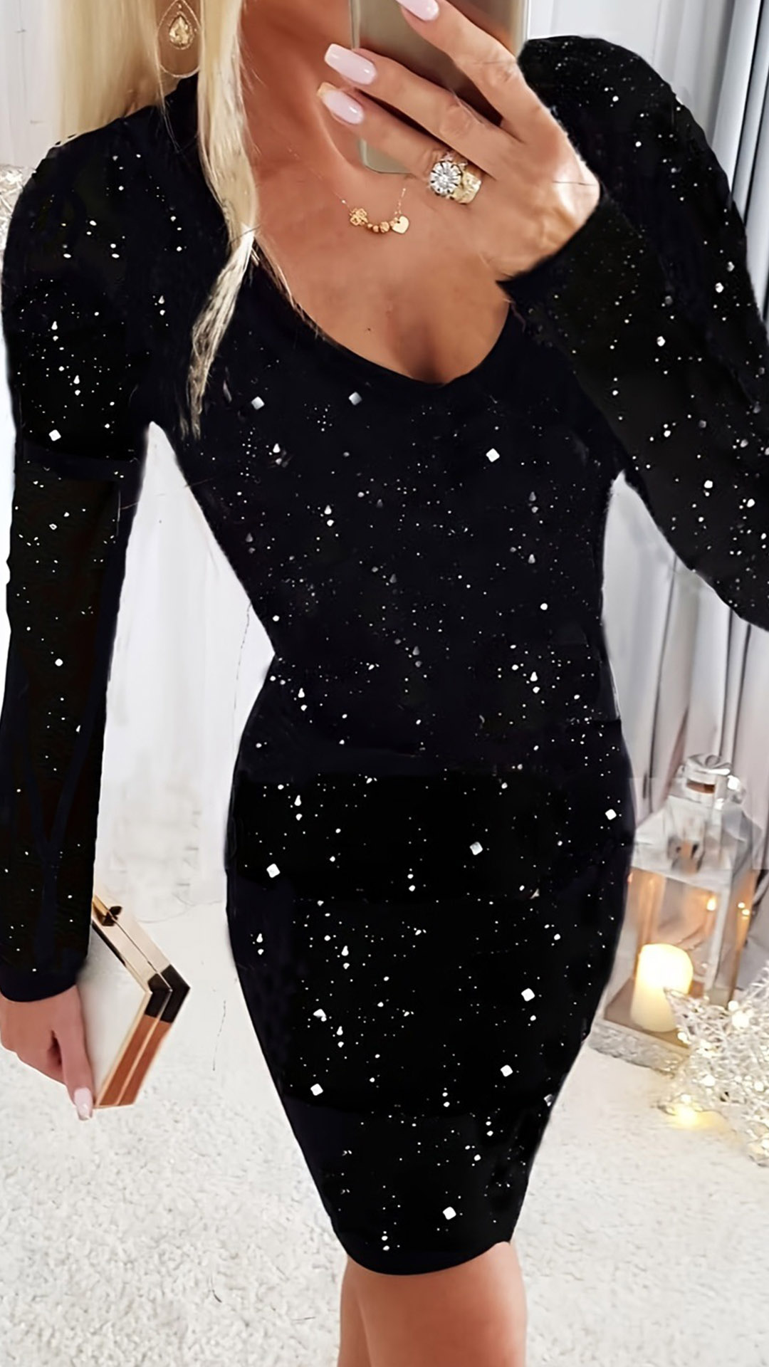 Fashion Bling-bling V-neck Long Sleeve Bodycon Dress