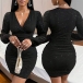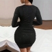 Fashion Bling-bling V-neck Long Sleeve Ruched Bodycon Dress