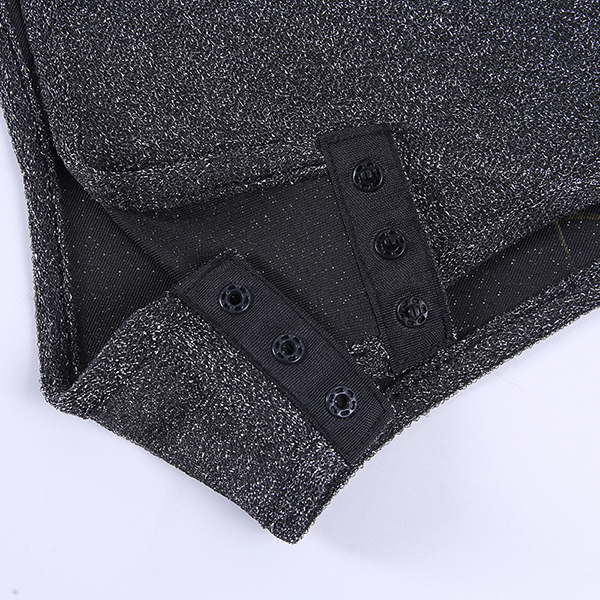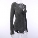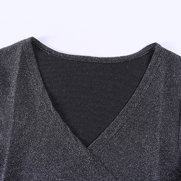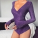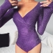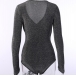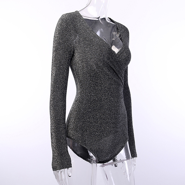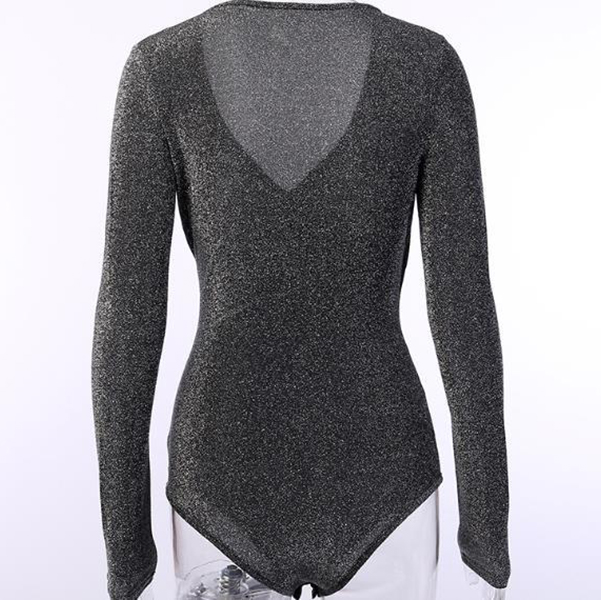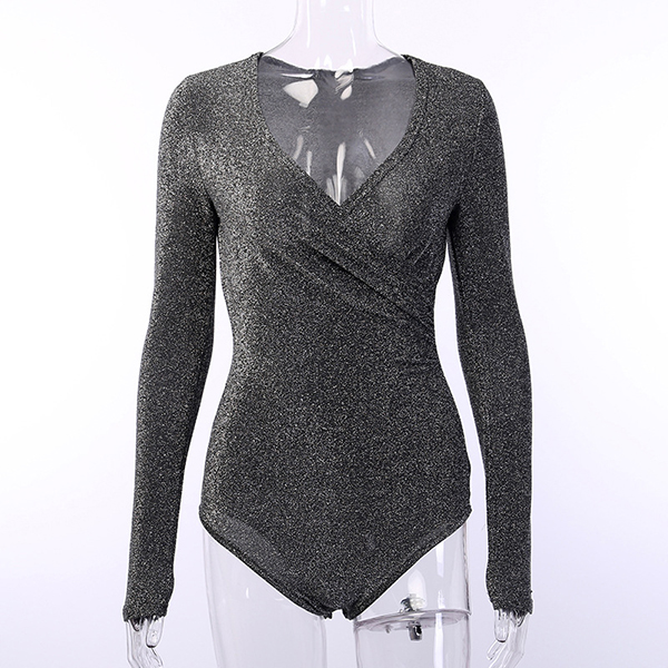 Fashion Bling-bling V-neck Long Sleeve Ruched Bodysuit