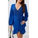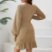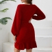 Fashion Bling-bling V-neck Long Sleeve Ruffle Irregular Hemline Wrap Dress