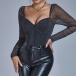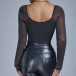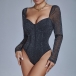 Fashion Bling-bling V-neck Long Sleeve Slim Fit Bodysuit