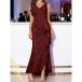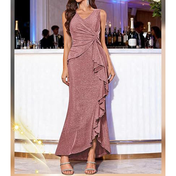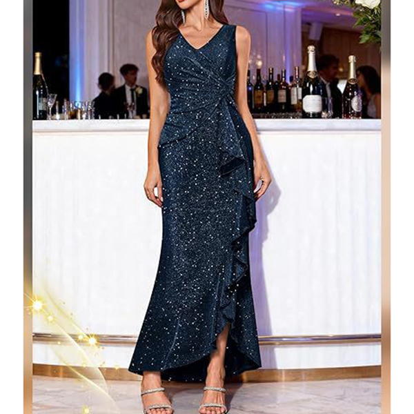Fashion Bling-bling V-neck Ruched Ruffle Party Dress