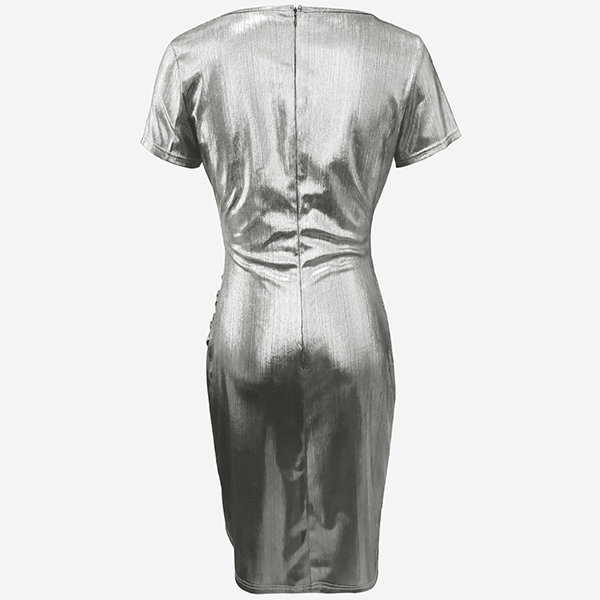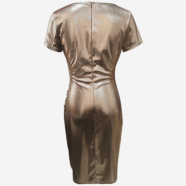 Fashion Bling-bling V-neck Short Sleeve Irregular Hemline Bodycon Dress