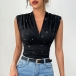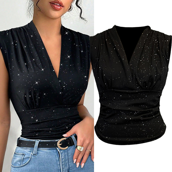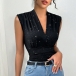 Fashion Bling-bling V-neck Sleeveless Shirt