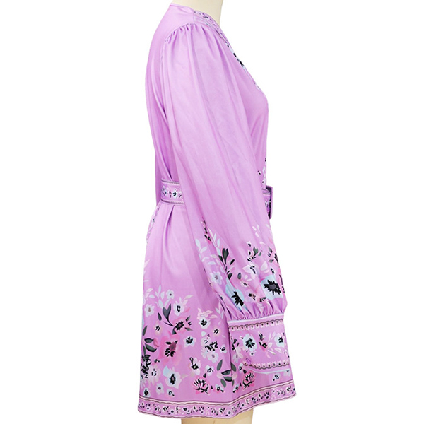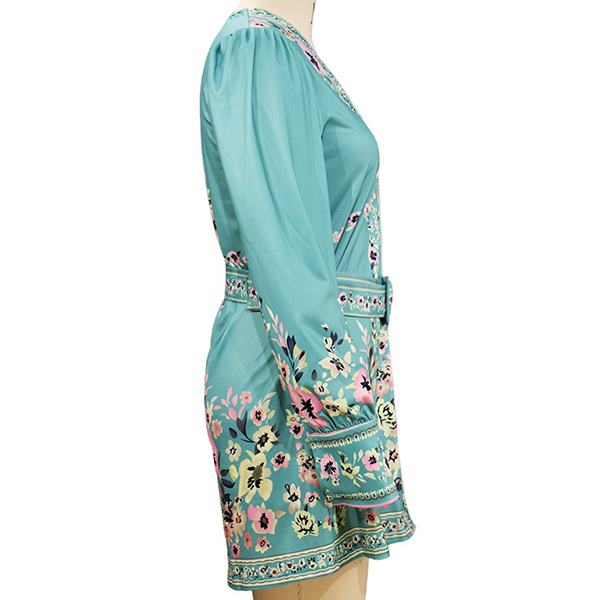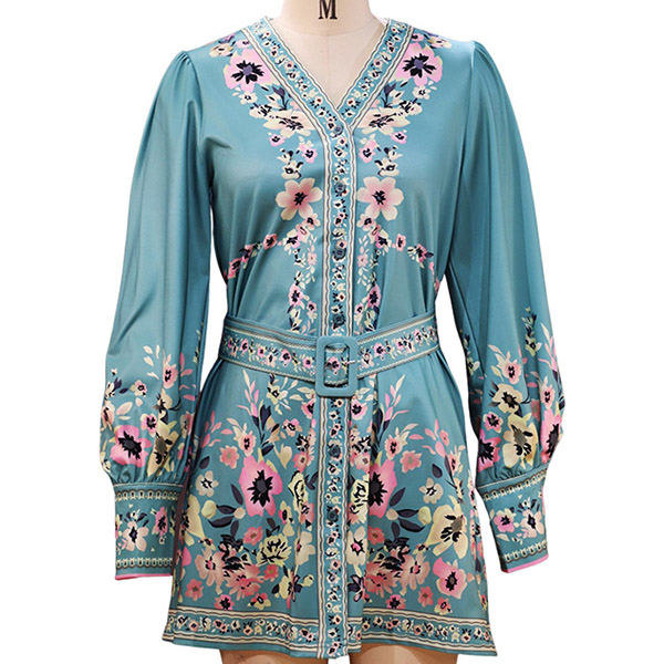This is a beautiful and unique bohemian-style dress. Overall floral printed, flattering V-neckline, long sleeve, and belt included.