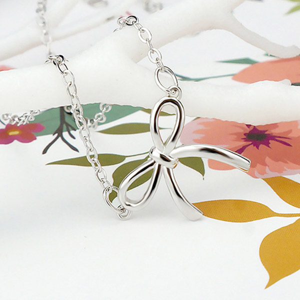 Fashion Bow-knot Pendant Silver-tone Necklace