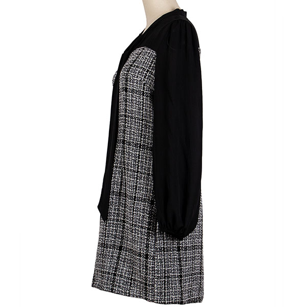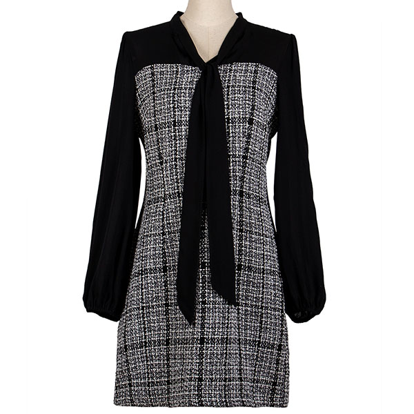 Bowknot is a common element in women's dress design. It represents romance, delicacy and elegance. Classic plaid element, simple silhouette, this piece will never be out of date. Decorated with the bowknot collar, you unique feminine temperament can be showcased perfectly.