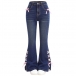 Fashion Bowknot Mid-rise Side Lace-up Wide-leg Old-washed Denim Jeans
