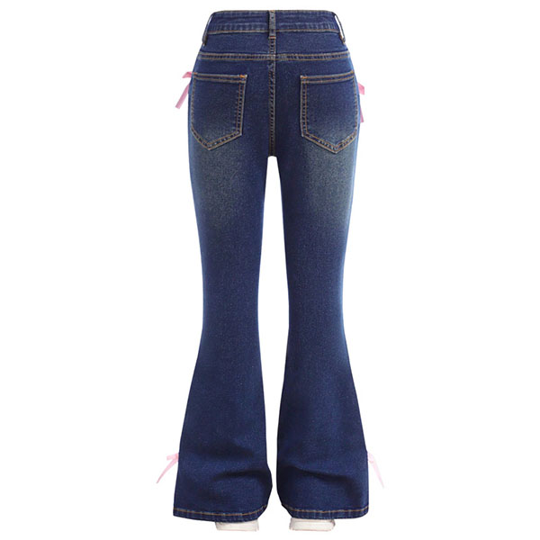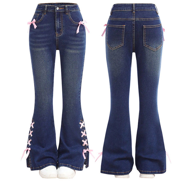 How about this jeans? The mid-rise waist provides comfortable coverage, while the charming bowknot detail adds a feminine touch to rugged denim. Unique side lace-up accents create adjustable width and visual interest, complementing the dramatic wide-leg silhouette that moves beautifully with every step. Versatile enough for casual weekends yet distinctive enough for standout street style, these jeans pair effortlessly with everything from fitted tops to oversized sweaters for year-round styling options.