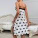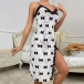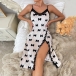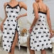 Fashion Bowknot Printed Lace Spliced V-neck Side Slit Nightwear Dress