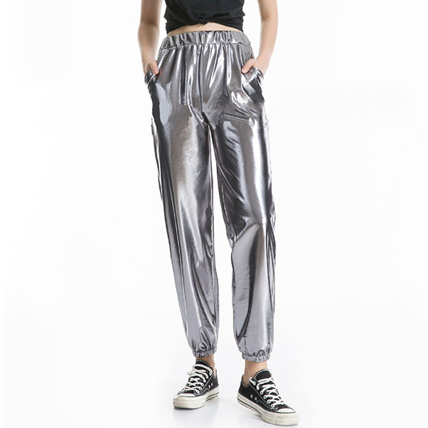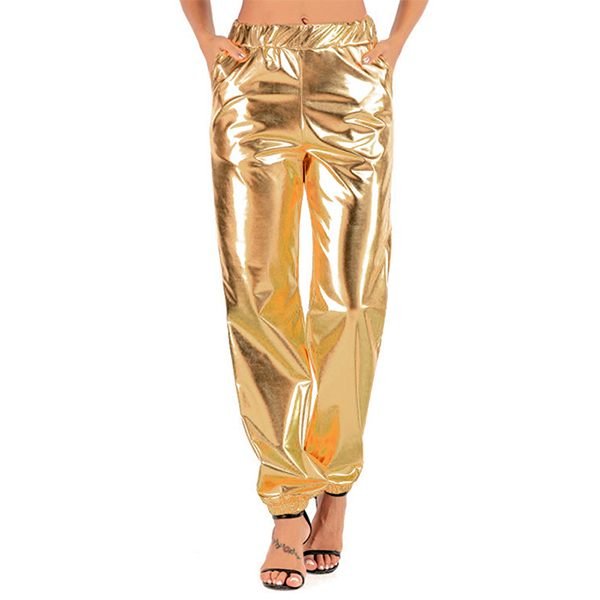 Fashion Bright-color Elastic Waist Artificial Leather PU Pants