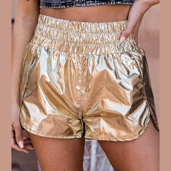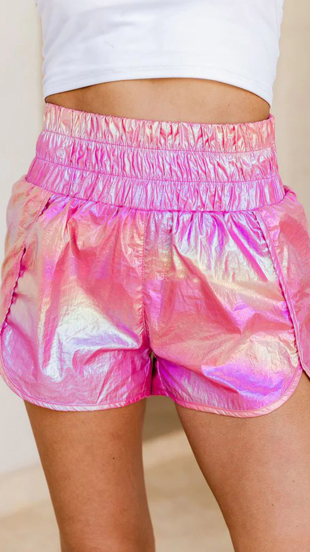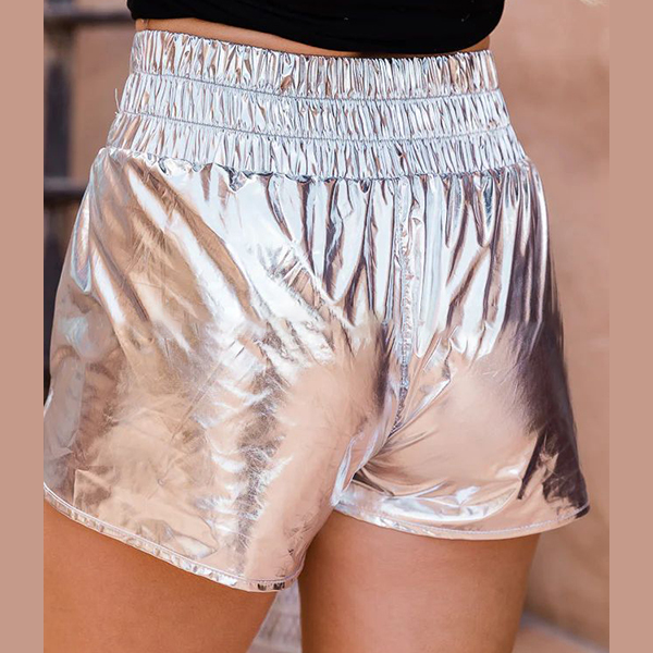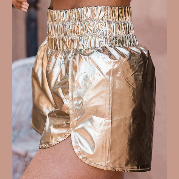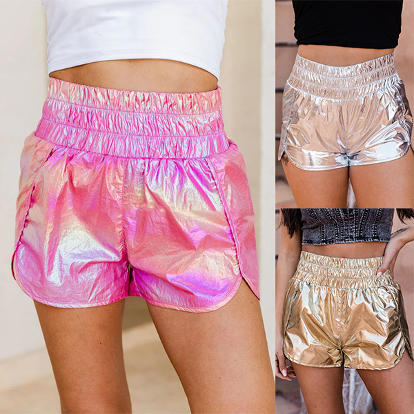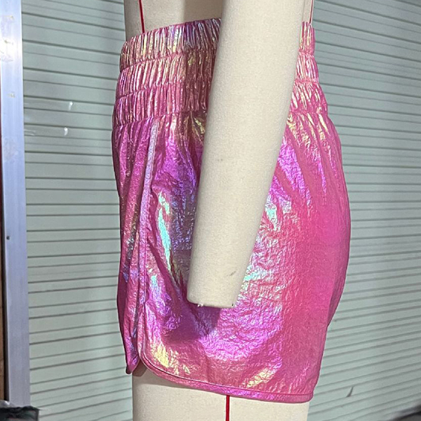 This shorts features a bright color palette with an elastic waistband for a fashionable and comfortable look.