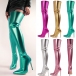 Fashion Bright Color Pointed-toe High-heeled Artificial Leather PU Thigh-high Boots