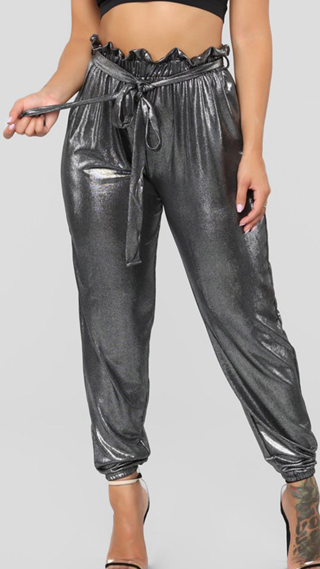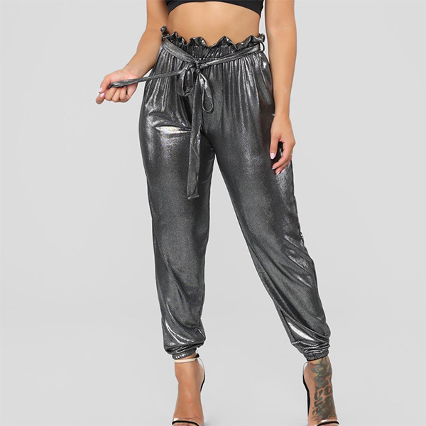 How about these pants? The bright color adds a pop of color to any outfit and is perfect for those who love to stand out. The ruffle detailing at the waist adds a feminine touch to the overall design, while the high-rise fit accentuates the waistline, creating a flattering silhouette. Wanna have one?