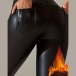Fashion Bright Color Warm Plush Lined High-rise Artificial Leather PU Skinny Pants