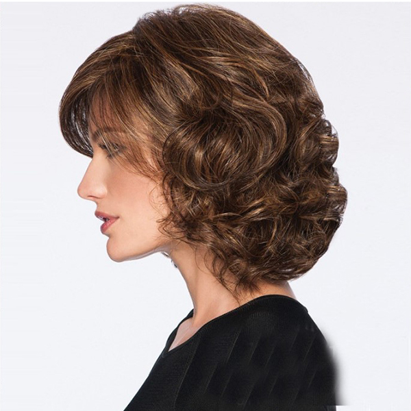 Fashion Brown Wavy Bob Cut Synthetic Wig with Side Bangs