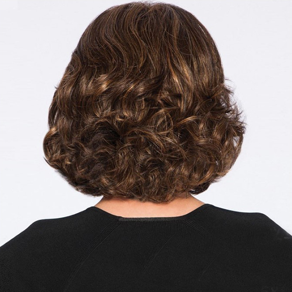 1. Medium brown synthetic fiber wig with short bob cut style.