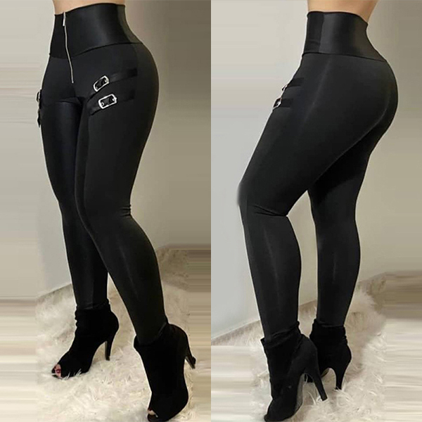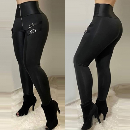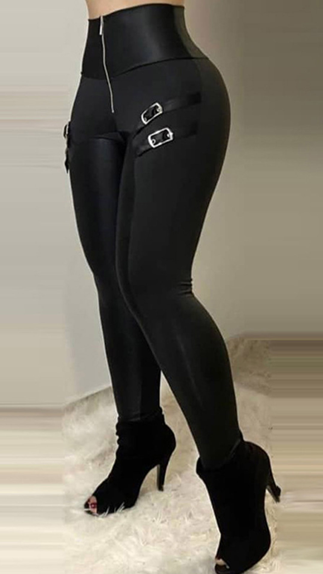 Look at this black pants! The high-rise design offers a flattering and on-trend silhouette. The buckle and zipper detailing add a unique and eye-catching element to the pants, giving them a modern and fashion-forward vibe. Wanna have a try?