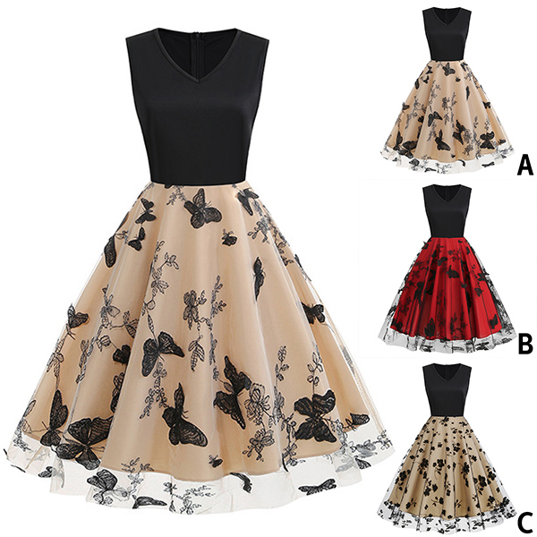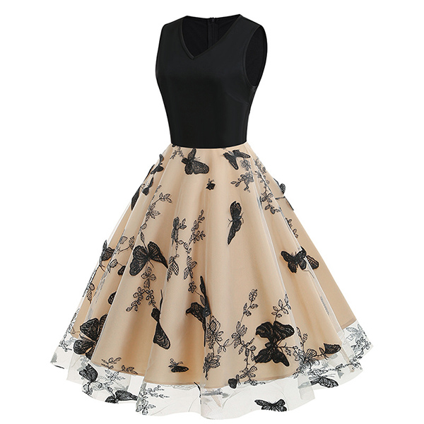 Fashion Butterfly Printed Gauze Spliced V-neck Sleeveless Dress